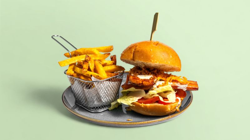 Haloumi, Vegan Cheddar, Tomate, Salade, Oignon, Sauce Tartare À L'estragon