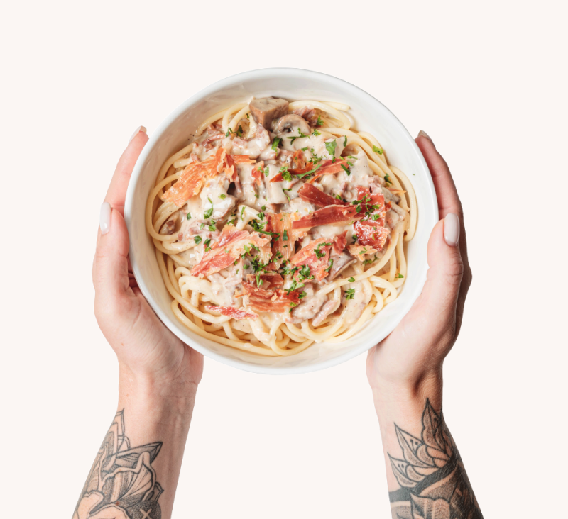 Filet De Poulet Émincé, Penne Au Pesto Amande Épinard, Tomates Confites, Olive, Grana Padano, Basilic, Pignons De Pin, Vinaigrette Balsamique