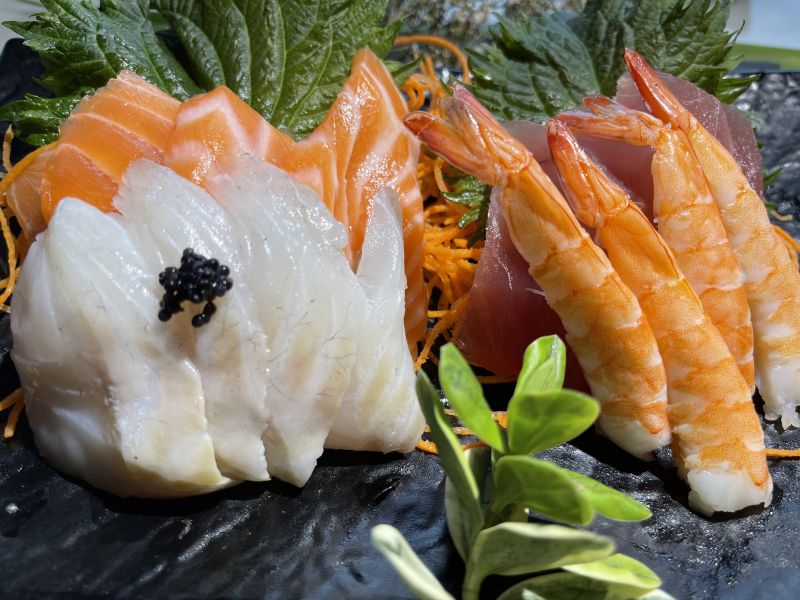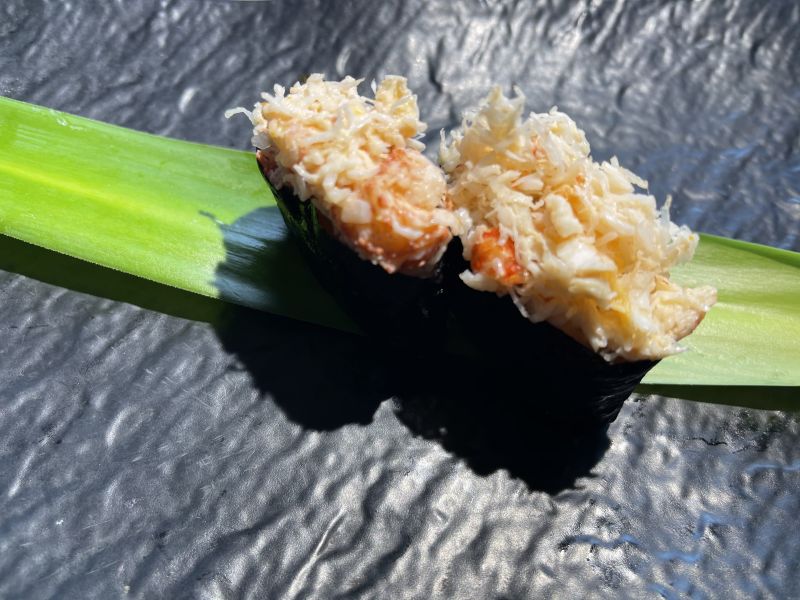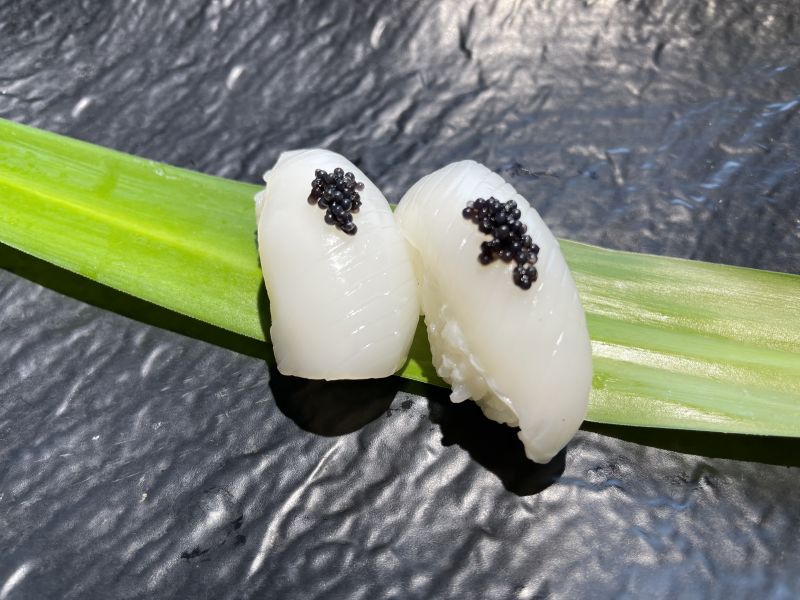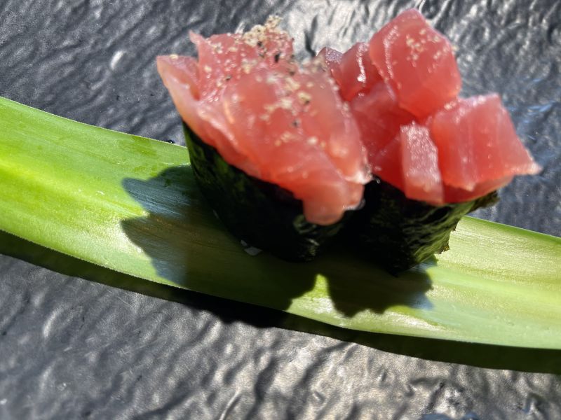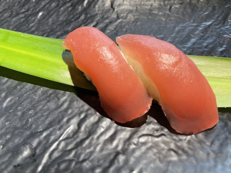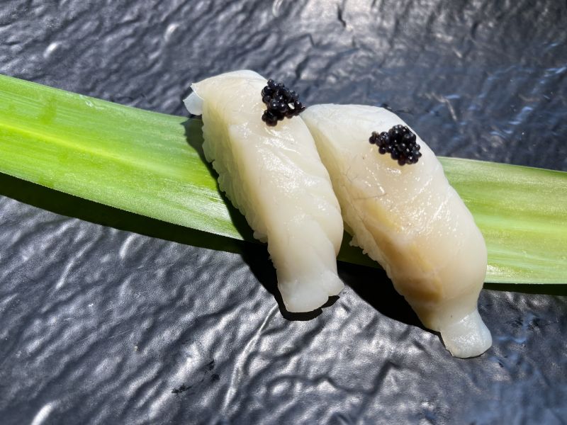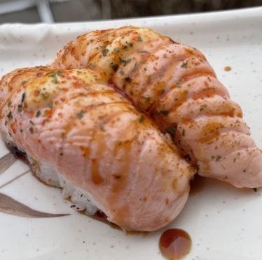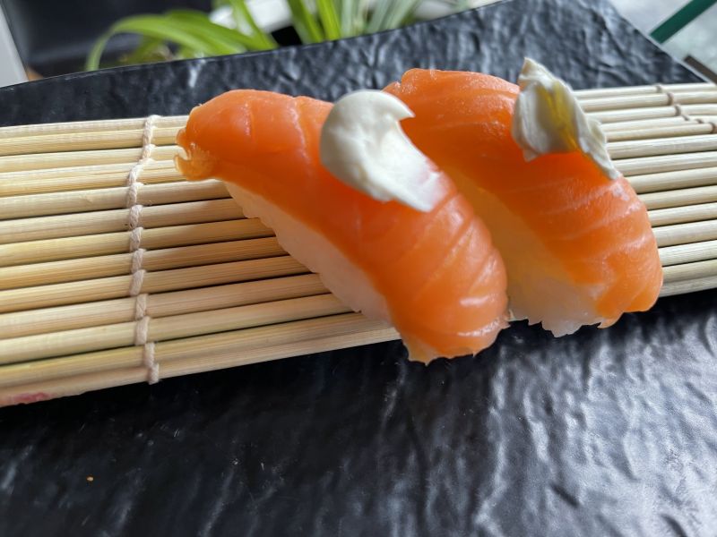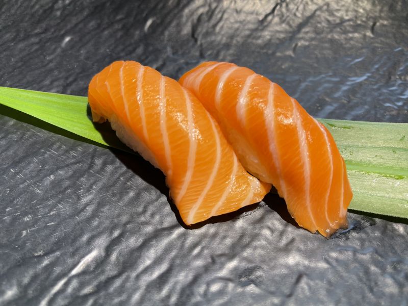 Fine tranche de poisson cru posé sur une boulette de riz vinaigré