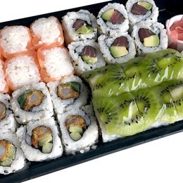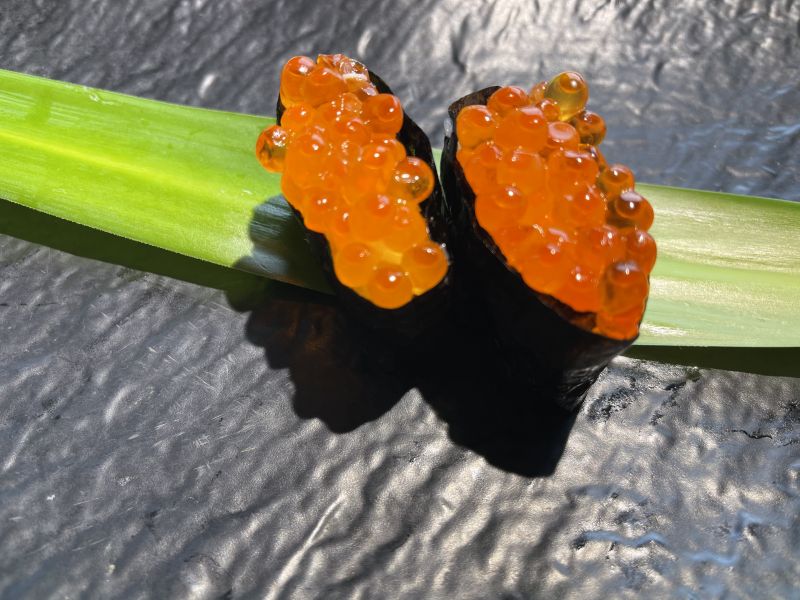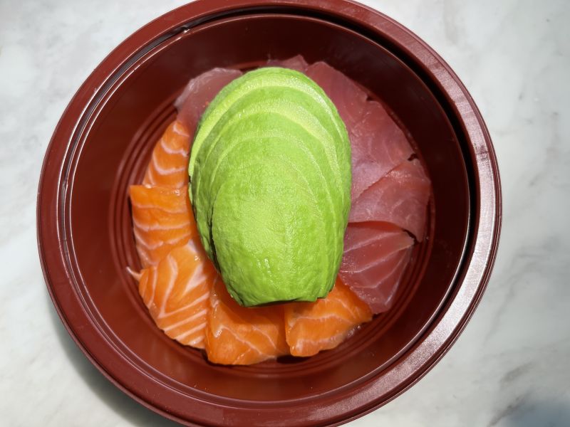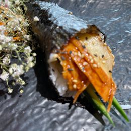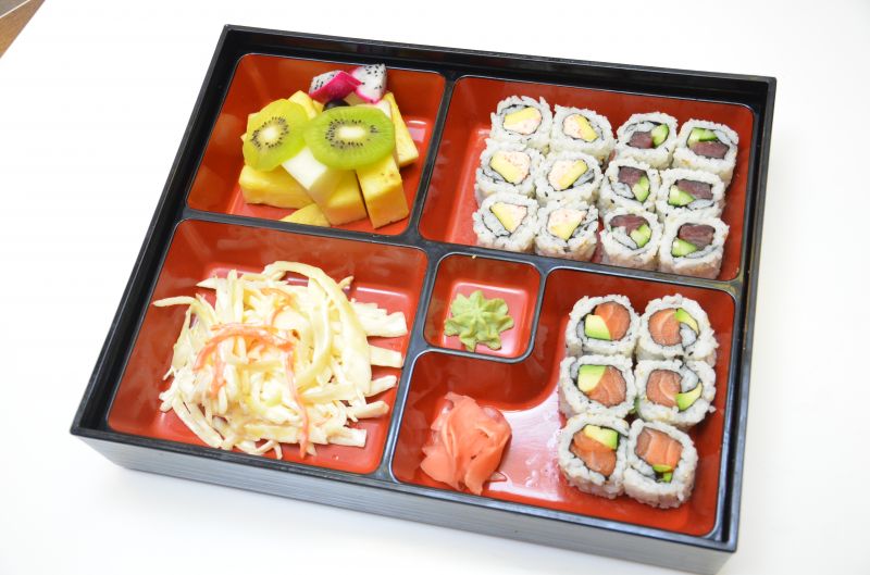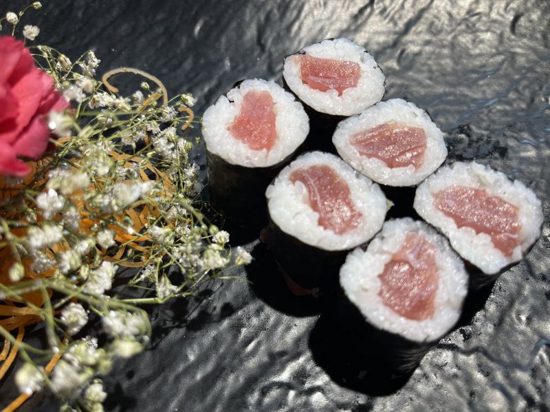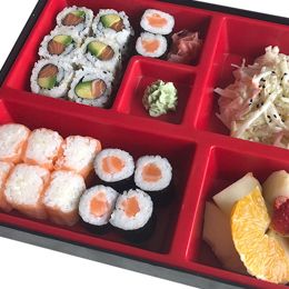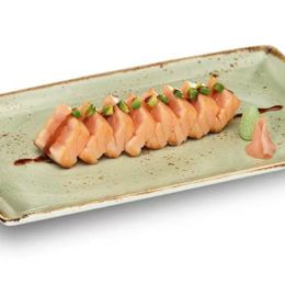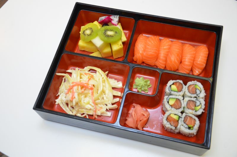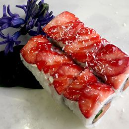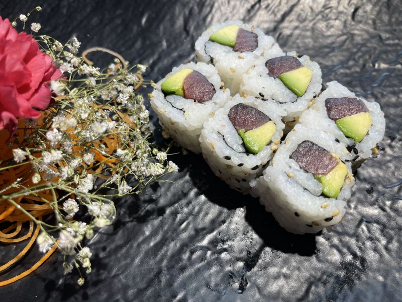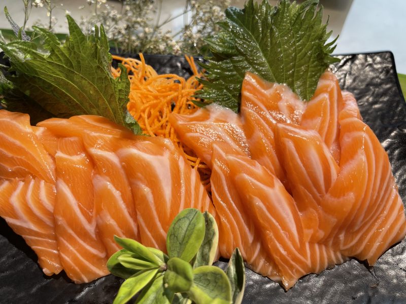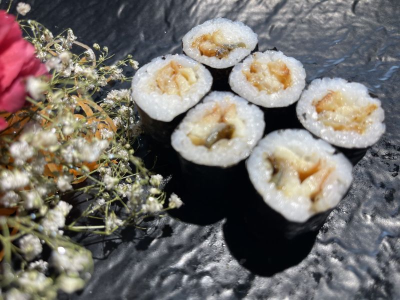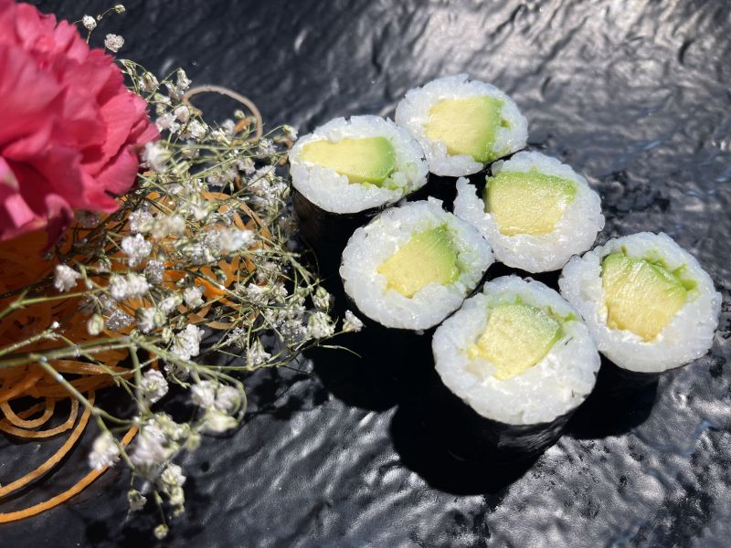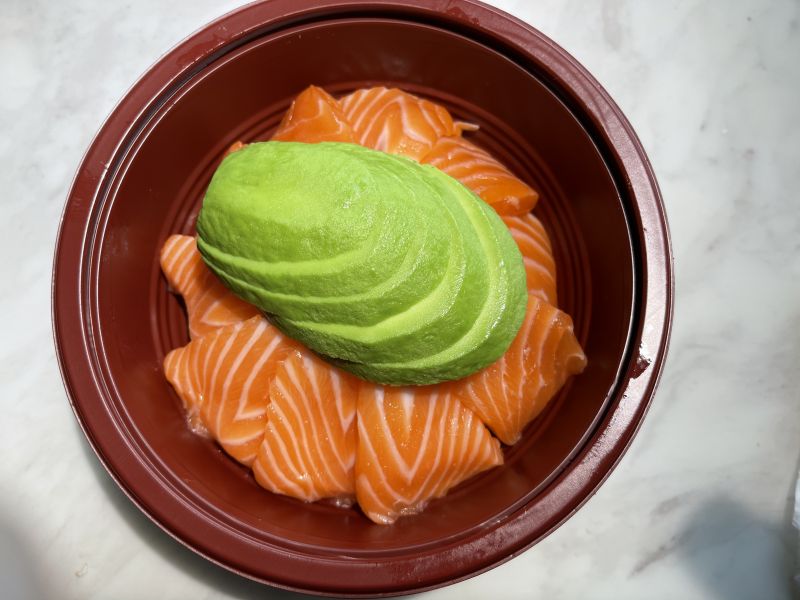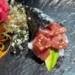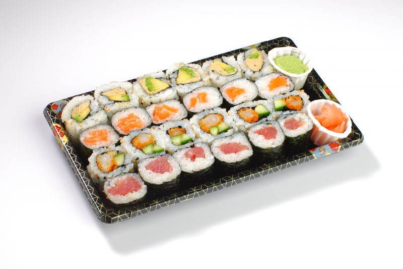 Riz et poisson enroulés dans une tranche de saumon fraîche