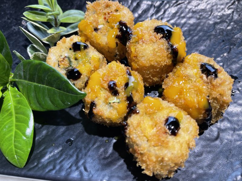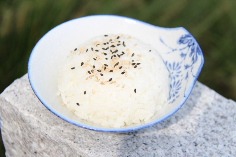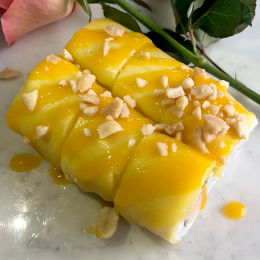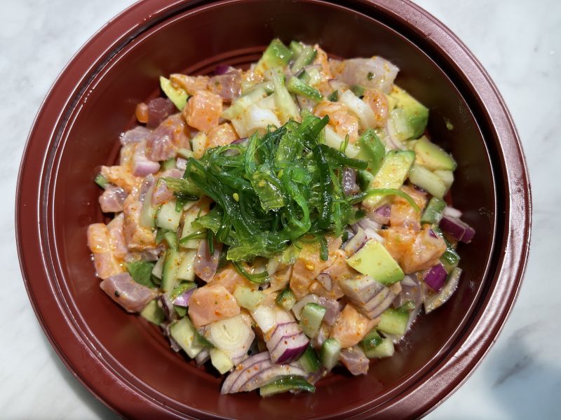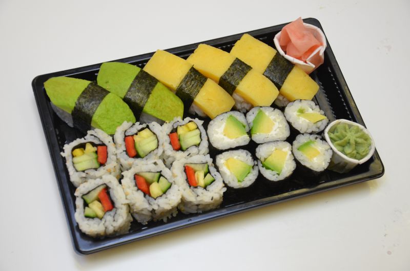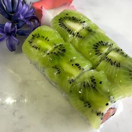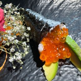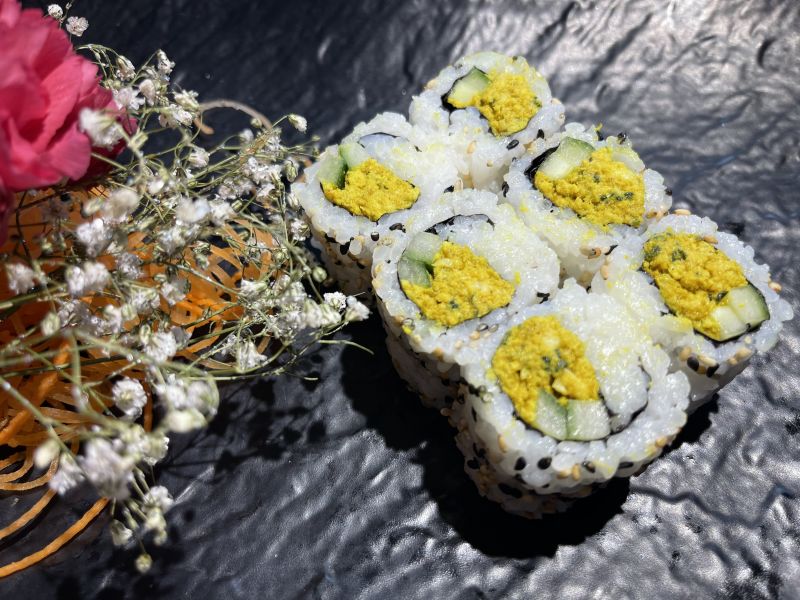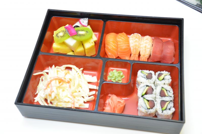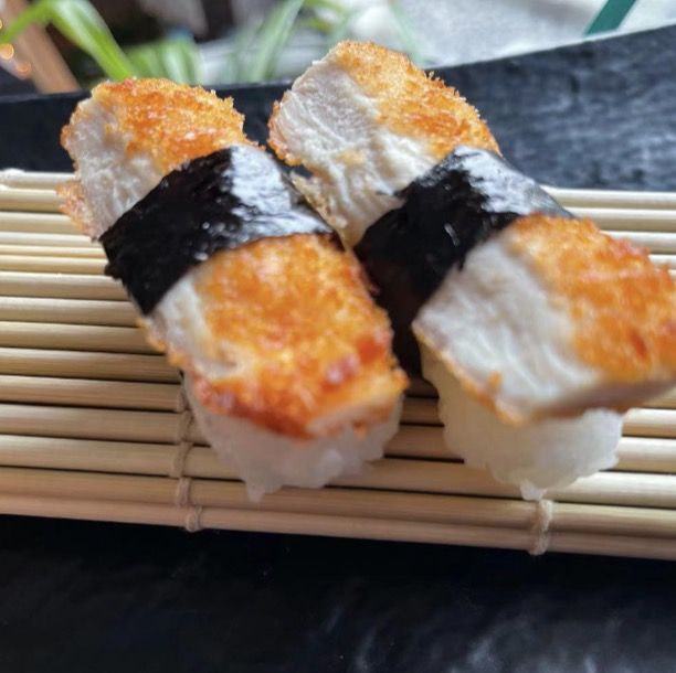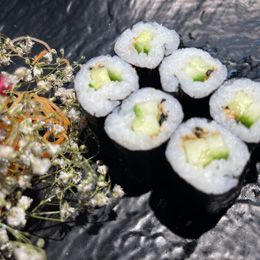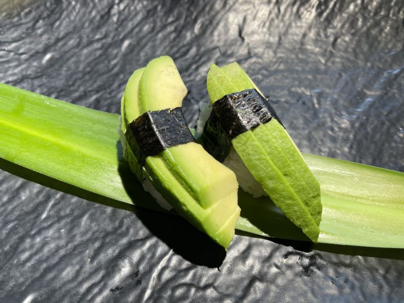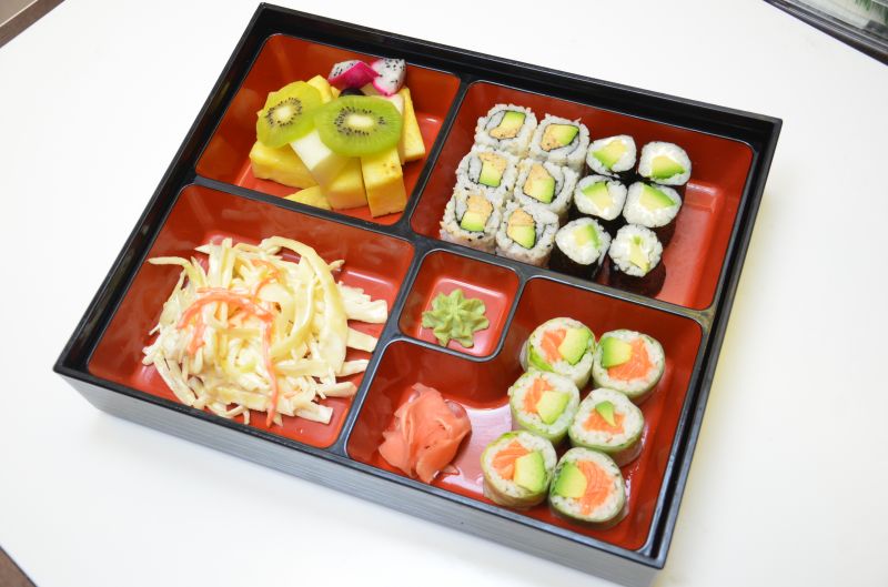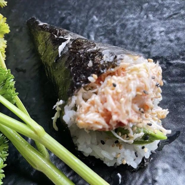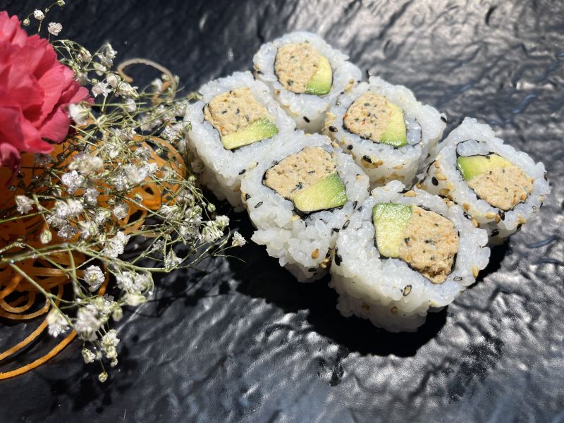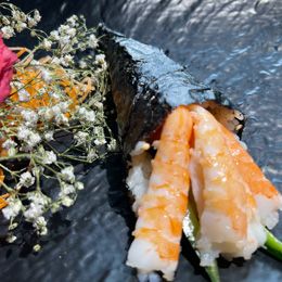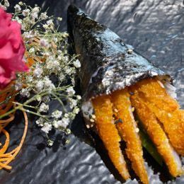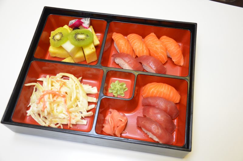 Riz et poisson enroulés dans une tranche de saumon fraîche