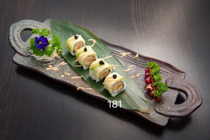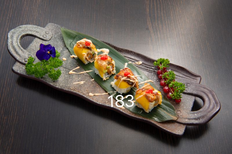 Tempura, Concombre, Enroulè De Mango Et Masago