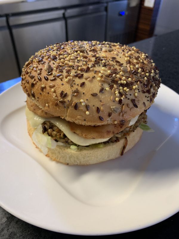 Bun Nature, Sauce Qui Fait Vibrer Les Maracas, Laitue Iceberg, Galette De Légumes Maison, Emmental, Onion Rings