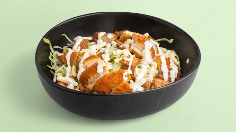 Cubes De Poulet Marinée Avec Ses Crudités Dans Un Pain Artisanal